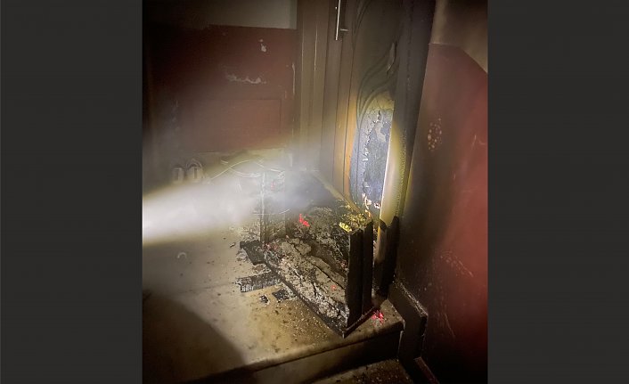 İtfaiye ekipleri tarafından söndürülen yangında evin kapısında hasar oluştu.