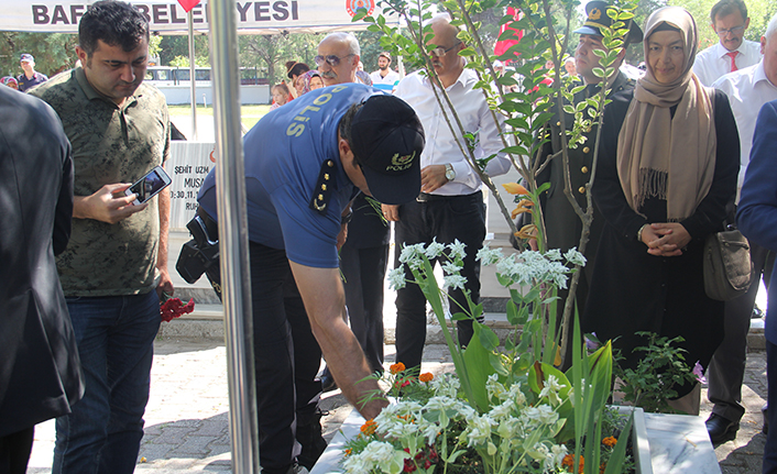 Anma programına, Bafra Belediye Başkanı Hamit Kılıç, Başkan Yardımcıları, Bafra Milli Eğitim Müdürü Mehmet Ali Katipoğlu, Bafra Müftüsü Necmettin Kayar, İlçe Emniyet Müdürü Süleyman Gökay Gökdoğan, siyasi parti temsilcileri ve çok sayıda vatandaş katıldı.Program, Bafra Müftülüğü görevlileri tarafından okunan Kur’an-ı Kerim tilaveti ile başladı. Ardından İlçe Müftüsü Necmettin Kayar ebediyete intikal etmiş şehitler ve Asri Mezarlıkta bulunan tüm metfunlar için dua etti. Daha sonra da beraberindeki heyet ile birlikte şehitlerin mezarlarına karanfil bıraktı.