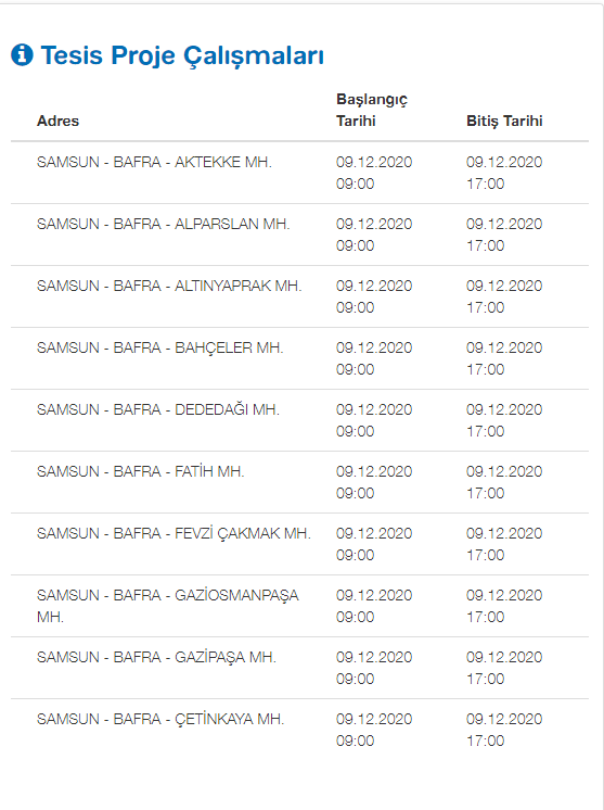 Yeşilırmak Elektrik Dağıtım A.Ş.(YEDAŞ) İl Koordinatörlüğü, Bafra’da Arıza Bakım Onarım ve Yatırım Tesisleri'nin devreye alınması için yapılacak olan teknik çalışmalar nedeniyle 'Programlı Elektrik Kesintisi' uygulanacağını açıkladı.