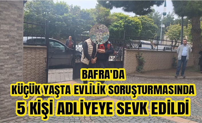 Samsun'un Bafra ilçesinde, erken yaşta evlilik soruşturmasında gözaltına alınan 5 kişi adliyeye çıkarıldı.