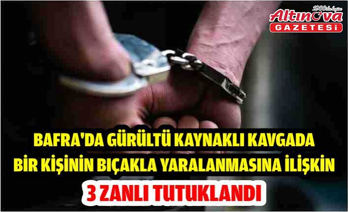 Samsun'un Bafra ilçesinde gürültü yüzünden çıkan bıçaklı kavgada bir kişinin yaralanmasına ilişkin gözaltına alınan 4 şüpheliden 3'ü tutuklandı.