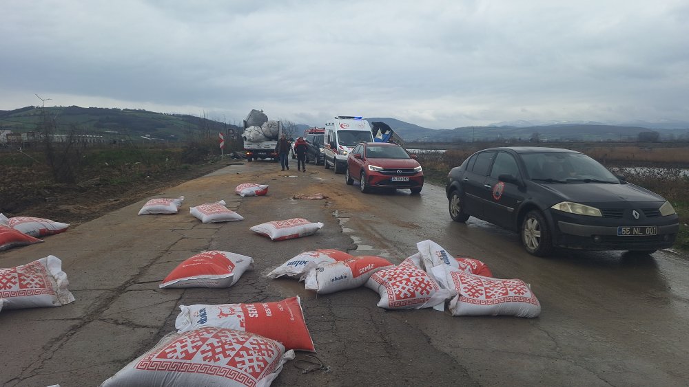Kızılırmak Seddesi Bafra Organize Sanayi Sitesi yolunda Osman Zeki Y'nin (26) kullandığı 61 KA 418 plakalı hayvan yemi yüklü tır, karşı yönden gelen Ercan Yılmaz (60) idaresindeki 55 K 0979 plakalı cam yüklü tırla çarpıştı.