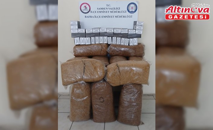 Samsun'un Bafra ilçesinde düzenlenen operasyonda kaçak tütün ve makaron (filtreli sigara kağıdı) ele geçirildi.