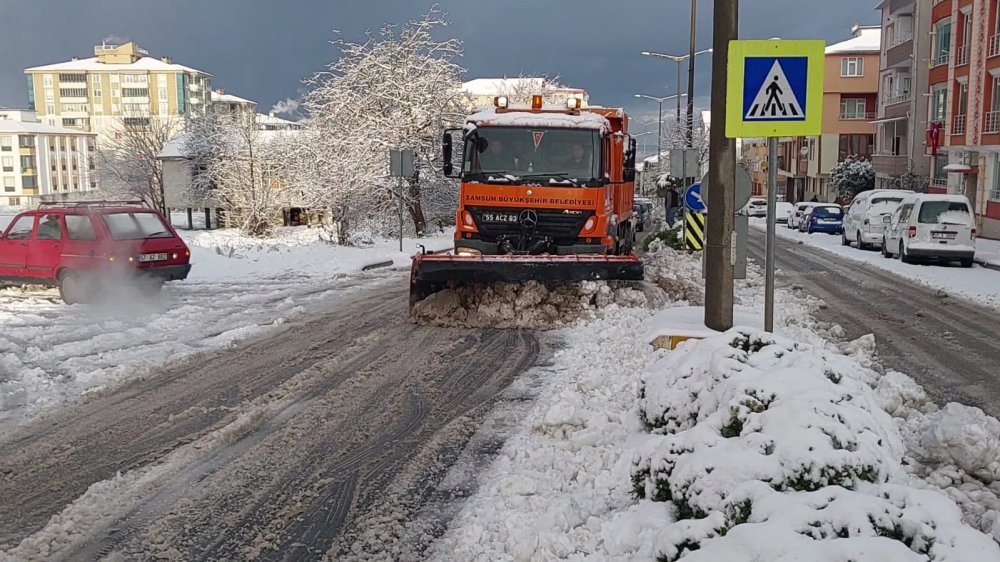 Ekipler, kapalı mahalle yollarını açmak için çalışmalarına aralıksız devam ediyor. SAMSUN (AA)