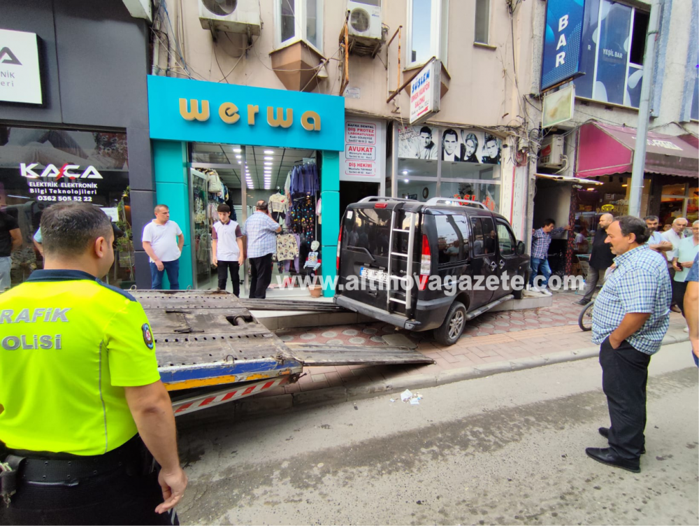 Samsun'un Bafra ilçesi Cumhuriyet Meydanı'nda yaşanan kazada, kontrolden çıkan bir araç önce yayaya çarptı, ardından berber dükkanına girdi.