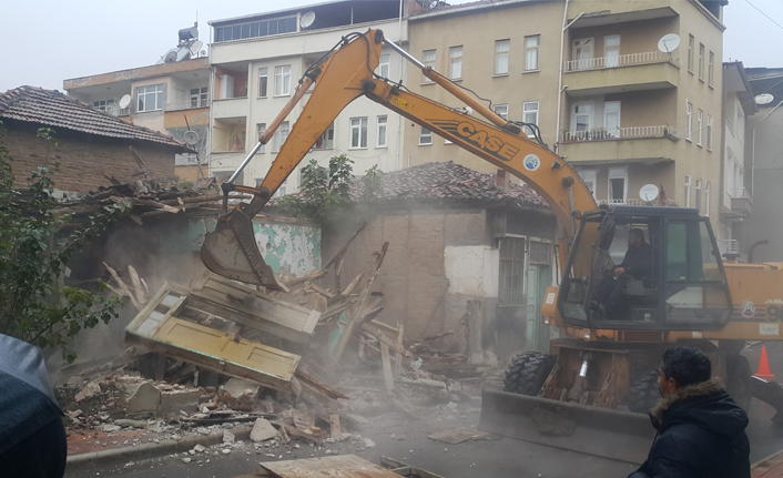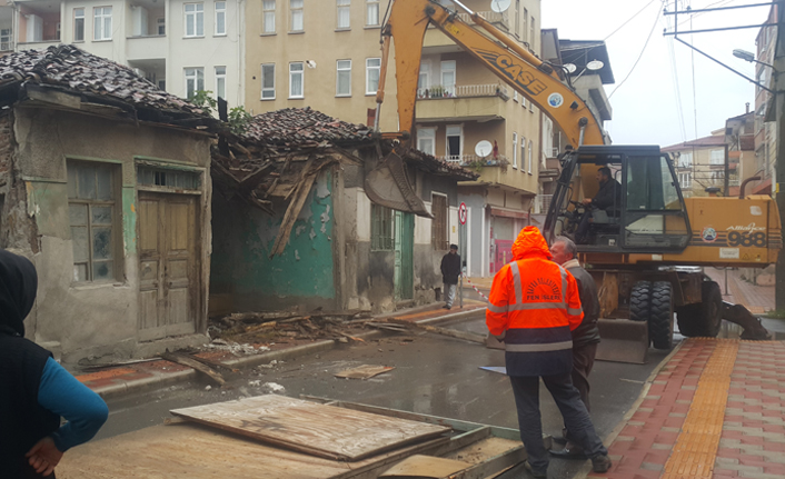 Bafra’da tehlike oluşturan binanın yıkımına başlandı.