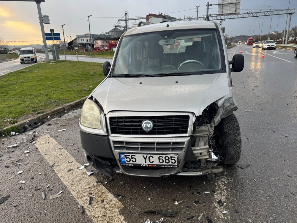 H.K. (47) yönetimindeki 55 YA 099 plakalı hafif ticari araç, Samsun-Sinop kara yolu Kolay Kavşağı'nda, S.A'nın (39) kullandığı 55 YC 685 plakalı hafif ticari araçla çarpıştı.