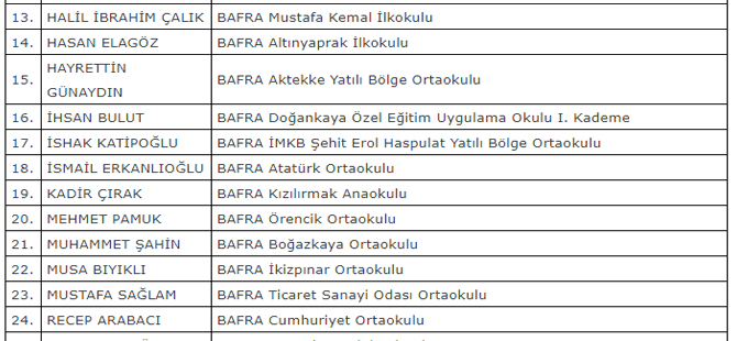 Bafra ilçesinde, bulunan okullarda görev yapacak olan 38 Müdürün atamaları belli oldu.