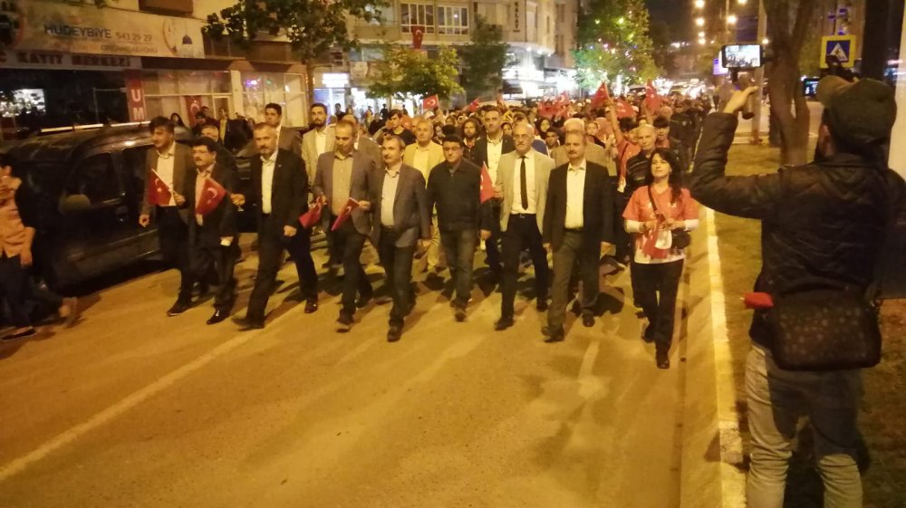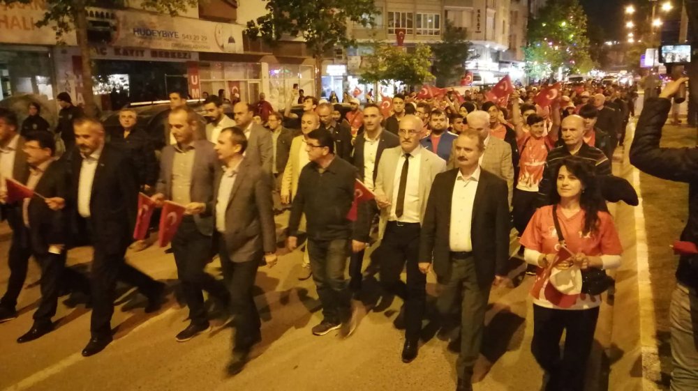 Çevredeki vatandaşlar da ellerindeki Türk bayraklarını sallayarak yürüyüş yapanlara destek verdi.