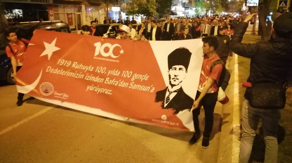 Öğrenciler Bafra Belediyesi'nin düzenlediği iftar programına katıldıktan sonra Bafra 15 Temmuz Demokrasi Meydanı'nda başlayan "1919 Ruhuyla Dedelerimizin İzinden" yürüyüşü Jandarma Komutanlığı önünde İstiklal Marşı'nın ardından Samsun'a doğru yola çıktılar.