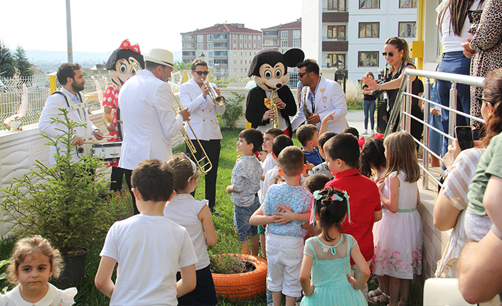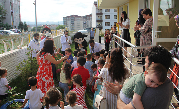 Ailelerin yoğun katılımıyla düzenlenen törende çocukların yıl boyunca yaptığı resimler sergilenirken, Samsun Bando Takımı ise miniklere eşlik etti. Düzenlenen karne töreni yapılan dondurma ikramı ve hediyelerin ardından son buldu.