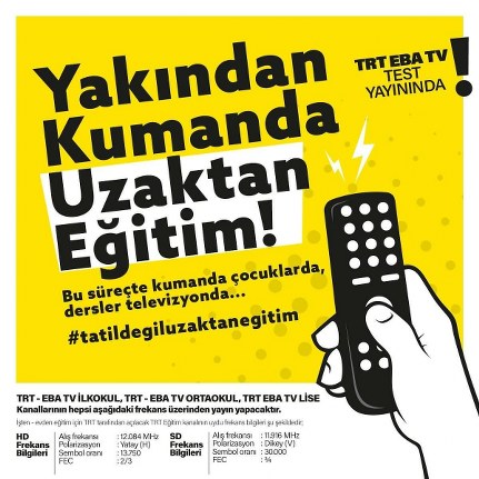 Uzaktan eğitim süreciyle ilgili Bakanlığımız tarafından ulusal ölçekte gerekli altyapı sağlanıp planlamalar yapılarak 23.03.2020 Pazartesi günü itibarıyla süreç başlamış olacaktır. Uzaktan eğitimde ilk ders, Milli Eğitim Bakanımız Prof. Dr. Ziya SELÇUK tarafından verilecektir. Uzaktan eğitim hizmeti EBA(Eğitim Bilişim Ağı) ve TRT aracılığıyla sunulacaktır. Bu sürecin sağlıklı yürümesi adına değerli velilerimizin desteğine ihtiyaç duymaktayız. Ebeveynlerimizin; öğrencilerimizin uzaktan eğitim sürecine aktif katılımlarını sağlamak adına gerekli yönlendirmeyi ve takibi yapmaları önem arz etmektedir.