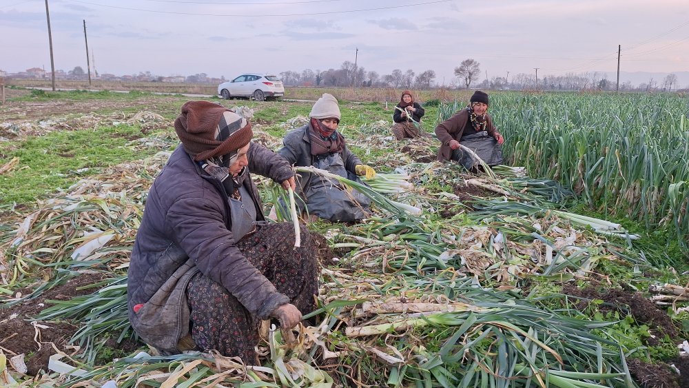 Kızılırmak Nehri'nin beslediği verimli topraklar üzerindeki Bafra Ovası'nda pırasa hasadında dekar başına ortalama 5 bin ton ürün alınıyor.