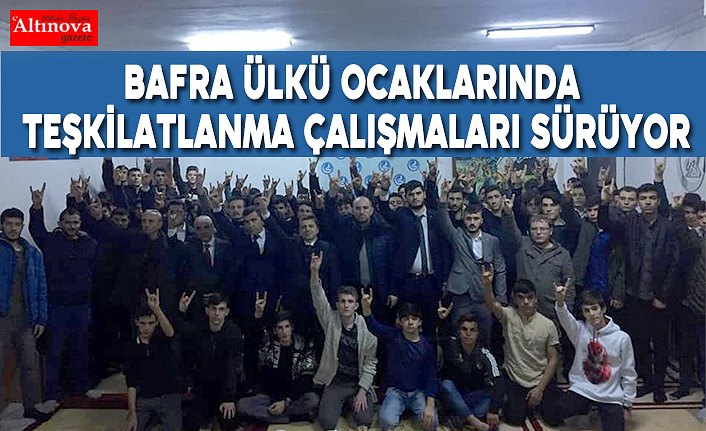 Ülkü Ocakları Bafra İlçe Başkanlığı faaliyetlerine ara vermeden devam ediyor. İlçe`de uyuşturucu ile mücadele, eğitim, spor, sosyal sorumluluk ve genç nesle faydalı olacak bir çok etkinliğe imza atan Bafra Ülkü Ocakları teşkilatlanma çalışmalarına da devam ediyor. Dün Bafra İlçe Başkanlığında Ülkü Ocakları Bafra İlçe Başkanı Kemal Şahin önderliğinde bir araya gelen teşkilat mensupları yeni katılımcılarla birlikte gücüne güç kattı. Başkan Kemal Şahin önderliğinde ülkücü yemini eden yeni katılımcılar teşkilata katıldı.