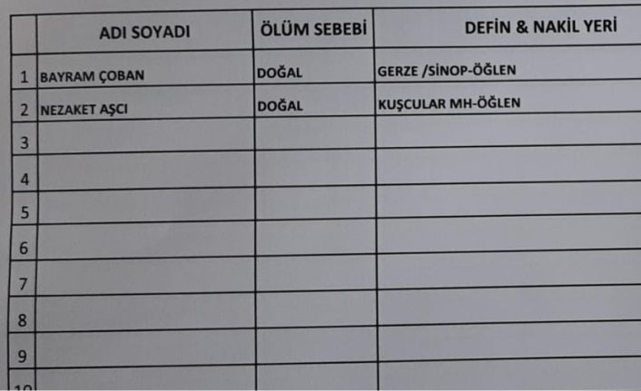 28 Aralık 2024 Cumartesi Bafra vefat edenler