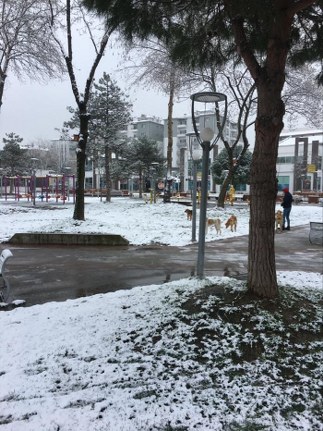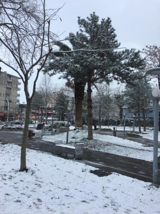 Ayrıca, kar yağışının başlamasıyla bazı vatandaşlar da cep telefonu ile fotoğraf çektirip anın tadını çıkarıyor.