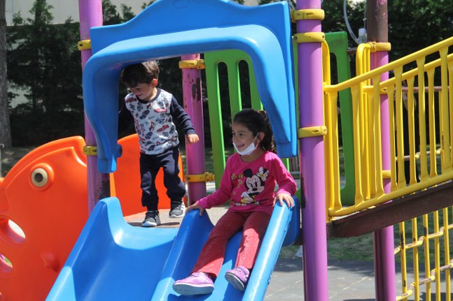 Yeni tip koronavirüs (Covid-19) salgını kapsamında alınan önlemler nedeniyle sokağa çıkmaları kısıtlanan 14 yaş altı çocuklar uzun bir aradan sonra ilk defa sokağa çıktı.