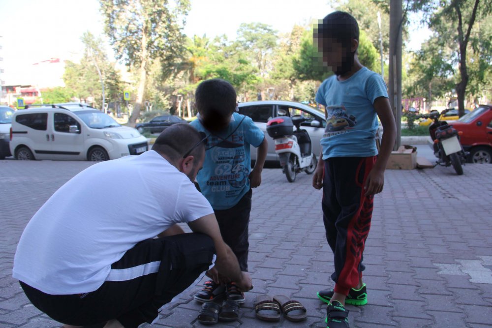 Samsun’un Bafra ilçesinde ayakkabısı olmayan 2 çocuğa ayakkabı alan esnaf çevredeki vatandaşları duygulandırdı.