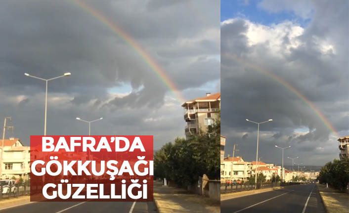 Bafra’da yağmurun ardından beliren gökkuşağı, dakikalarca süren güzel görüntüleri ile vatandaşların ilgisini çekti.