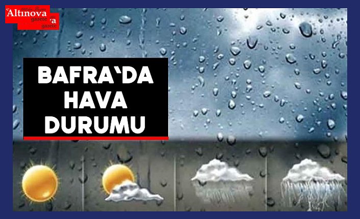 Samsun Bafra 27 Kasım 2018 Salı günü hava Bulutlu, sıcaklık ise 19 dereceyi gösteriyor. 28 Kasım 2018 Çarşamba günü ise havanın Bulutlu, ve sıcaklığın 20 derece olacağı tahmin edilmekte. 29 Kasım 2018 Perşembe günü hava Yağmurlu, sıcaklık ise 14 dereceyi gösterecek. 30 Kasım 2018 Cuma günü için havanın Yağmurlu olması bekleniyor, sıcaklık da 14 dereceyi bulacak. 1 Aralık 2018 Cumartesi günü için havanın Yağmurlu olacağı yönünde tahminler var, sıcaklık ise 14 dereceyi gösterecek.