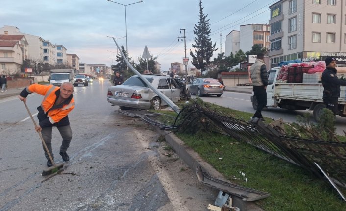 Samsun-Sinop kara yolu Fevzi Çakmak Mahallesi mevkisinde sürücüsü henüz öğrenilemeyen 55 AIV 314 plakalı otomobil, bariyerlere çarptıktan sonra orta refüje çıkarak durdu.