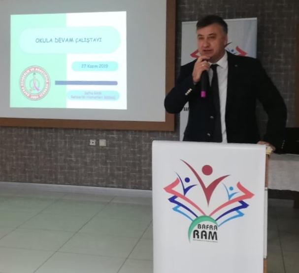 Hedef olarak okul devamsızlığının azaltılması için yapılan çalıştaya Bafra İlçe Mlli Eğitim Müdürü Mehmet Ali KATİPOĞLU Bafra İlçe Milli Eğitim Şube Müdürleri Yüksel AYDIN ve Zekeriya AKBAĞ katıldı.