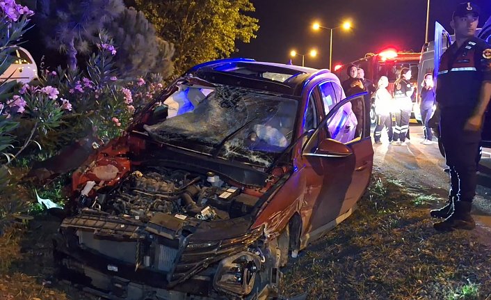 Çarpmanın etkisiyle sağ tekeri kopan otomobil, yaklaşık 50 metre sürüklendikten sonra bariyerlere çarpıp hendeğe devrildi.