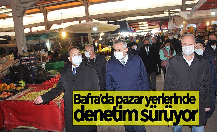 Samsun’un Bafra ilçesinde Pandemi Denetim Planı doğrultusunda, Bafra Kaymakamlığı koordinesinde ilçede ki pazaryerlerinin denetimleri sürüyor. Bugün Büyük Pazarda Bafra Kaymakamı Cevdet Ertürkmen, Bafra Belediye Başkanı Hamit Kılıç, Bafra İlçe Sağlık Müdürü Aytaç Akın, İlçe Emniyet Müdürü Süleyman Gökay Gökdoğan, İlçe Tarım ve Orman Müdürü Ahmet Dursun, Bafra Pazarcılar Odası Başkanı Hüseyin Topuz ve beraberindeki heyet pazaryerinde incelemelerde bulundu.