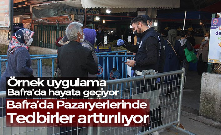 Öte yandan Pazar yeri esnafı içinde düzenlenen uygulamada yaklaşık 500 esnafın HES Kodları alınarak günlük olarak takibi sağlanacak. Konuyla ilgili konuşan Bafra İlçe Sağlık Müdürü Aytaç Akın “Biz her hafta küçük Pazar ve büyük Pazar yerlerini, hem Bafra Kaymakamı Cevdet Ertürkmen ile hem de Bafra Belediye Başkanı Hamit Kılıç ile beraber buraları denetledik. Pazar yerlerinde geniş bir esnaf kitlemiz var ve buraların giriş çıkışlarını kontrol altına alabilmemiz için çok fazla uygulamalarda bulunduk, kalabalık oluşturmaması içinde Pazar yerlerinin her gün açık olmasını sağladık. Sağ olsunlar Bafra Pazaryerleri Odası Başkanımız Hüseyin Topuz ve Sekreterimiz ellerinden gelen yardımı bizler için yaptılar.