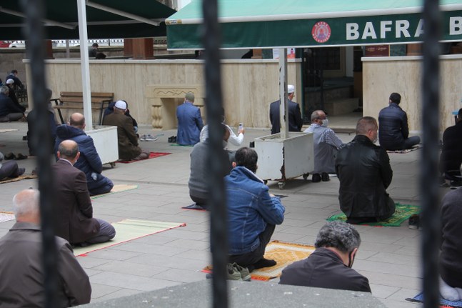 Camilerin ibadete açılması sonrasında Bafra’ da sosyal mesafe kuralına dikkat edilerek ilk Cuma namazı kılındı.