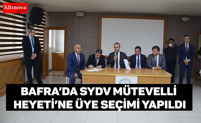 Bafra ilçesi Sosyal Yardımlaşma ve Dayanışma Vakfı (SYDV) mütevelli heyetine 31 Mart Yerel seçimlerinin ardından muhtar üye seçimi yapıldı. Divan Kurulu Başkanlığını Bafra Sosyal Yardımlaşma ve Dayanışma Vakfı Müdürü Hasan İrer’in yaptığı ve 92 muhtarın katıldığı mütevelli heyeti için 4 mahalle muhtarı aday oldu. Yapılan seçimler sonucunda;Evrenuşağı Mahalle Muhtarı Erdoğan Akın 60 Oy, Mevlana Mahalle Muhtarı Servet Şengül: 45 Oy, İsmetpaşa Mahalle Muhtarı Fatih Yıldız: 44 Oy ve Selemelik Mahalle Muhtarı Nurettin Özden: 23 Oy aldılar. Bu sonuçlara göre Evrenuşağı Mahallesi Muhtarı Erdoğan Akın ve Mevlana Mahallesi Muhtarı Servet Şengül 1Bafra Sosyal Yardımlaşma ve Dayanışma Vakfı mütevelli heyetine seçilmiş oldular.