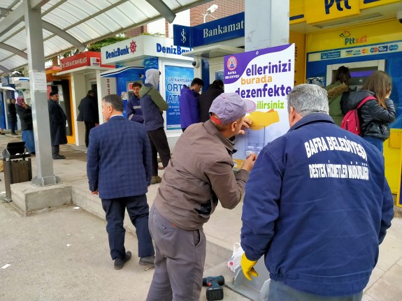İş yerlerine dezenfekte, ATM’lere dezenfektanlı önlem