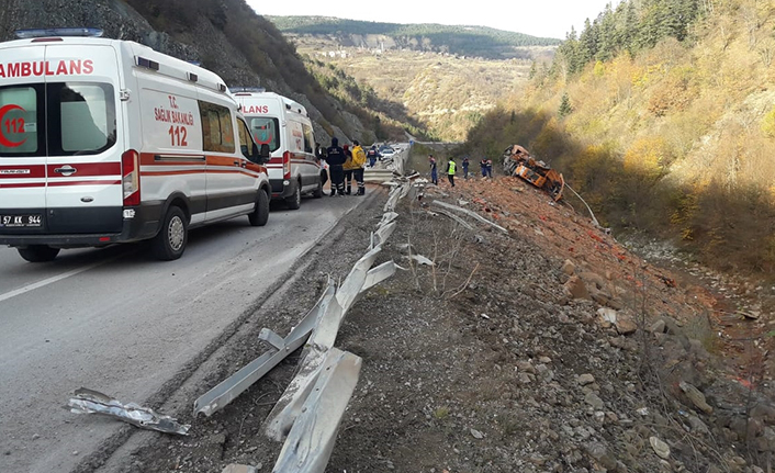 Sinop'ta, tuğla yüklü kamyonun uçuruma devrilmesi sonucu 2 kişi hayatını kaybetti, bir kişi yaralandı.