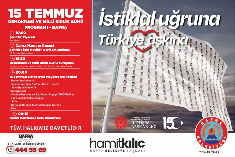 Bafra Belediye Başkanı Hamit Kılıç, 15 Temmuz Demokrasi ve Millî Birlik Günü nedeniyle bir mesaj yayımladı.