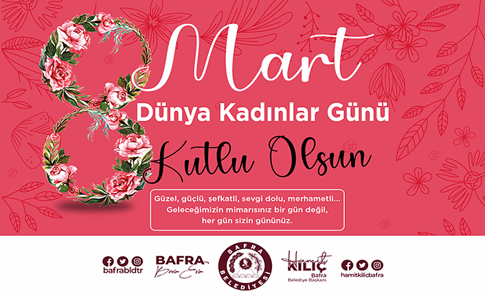 Bafra Belediye Başkanı Hamit Kılıç, 8 Mart Dünya Kadınlar Günü nedeniyle bir kutlama mesajı yayımladı.