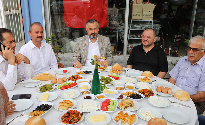 İlçedeki Küçük Sanayi Sitesi esnaflarından Dursun Kemaloğlu tarafından düzenlenen kahvaltı programına katılan Başkan Kılıç’a, Sanayi Sitesi Dernek Başkanı Mustafa Bektaş,Belediye Meclis Üyesi Eyüp Sabri Şahin, Başkan Yardımcıları Şaban Hüryaşar ve İsmail Kurt eşlik etti.