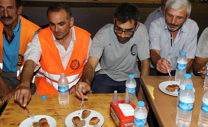 Başkan Kılıç, son olarak Temizlik İşleri Müdürlüğünde görevli gece vardiyası çalışanlarını gece yarısı verdikleri mola esnasında ziyaret etti.