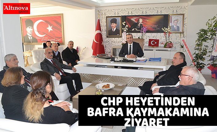 Cumhuriyet Halk Partisi İlçe Teşkilatı Bafra`ya yeni atanan Kaymakam Ahmet Adanur`u ziyaret etti. CHP İlçe Başkanı Vahit Perçin ve yönetim kurulu üyeleri Kaymakamlığa gelerek İlçe`ye yeni atanan Bafra Kaymakamı Ahmet Adanur `a ziyaret gerçekleştirdi. İlçe Başkanı Perçin, yeni atanan Kayamakam Adanur`a yeni görevinde başarılar dilerken, Ahmet Adanur`da yapılan ziyaretten dolayı memnuniyetini dile getirdi.