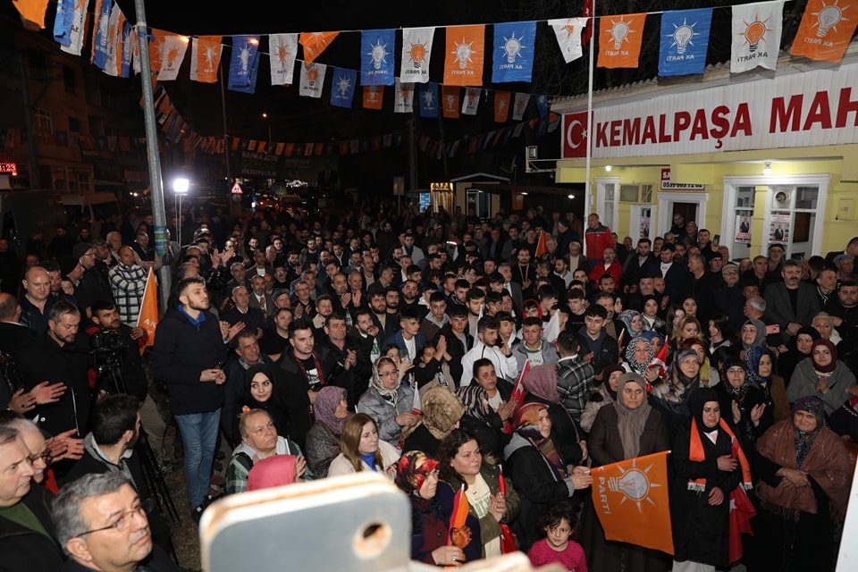 Birçok vaatler söyleniyor, bakıyorsunuz 5 yıl içerisinde hiç biri gerçekleşmiyor. Kimin ne söylediğine iyi bakmanız lazım. Önce lafa bakarım laf mı diye, sonra söyleyene bakarım kim diye. Ak Parti söylüyorsa yapar, başka bir parti söylüyorsa soru işareti. İnsanları aldatmayacağız. Ak Parti’de 2005 yılından bu güne farklı görevlerde bulundum. Hamit başkanın işi tutuşunu gördüm. Rahat bir şekilde Hamit Kılıç başkanımıza oy verebilirsiniz. Samsun Büyükşehir Belediye Başkanlığına aday olarak Halit Doğan başkanımızı gösterdik, ona da sizlerden destek istiyoruz. Samsun’un çocuğu, sizin kardeşiniz olarak Halit Doğan yola çıktı. Biz kendisine destek çıkacağız, ikisi de bir birine yakın. Hem Halit hem de Hamit Başkanı destekleyeceğiz. 1 Nisan’dan ihtibaren Mustafa Demir başkanın bıraktığı yerden devam edeceğiz.