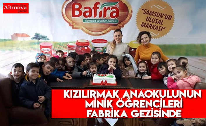 Kızılırmak Anaokulunun minik öğrencileri “Tutum Yatırım ve Türk Malları Haftası” etkinlikleri kapsamında Bafra ilçesinde faaliyet gösteren fabrikaları ziyaret etti. Kızılırmak Anaokulu Müdür Yardımcısı Elif Değirmenci ve Okul Öncesi Öğretmenlerinden Gülbeyaz Ülkü Arslan; ‘Tutum Yatırım ve Türk Malları Haftası’ kapsamında minik öğrencilere yönelik farklı bir etkinlik düzenlediler. Bu etkinlik kapsamda minik öğrenciler; Bafra ilçesinde faaliyet gösteren Yerebakanlar Pirinç Fabrikası ile Bafira Salça Fabrikasını ziyaret ederek üretim bantlarında incelemelerde bulundular.