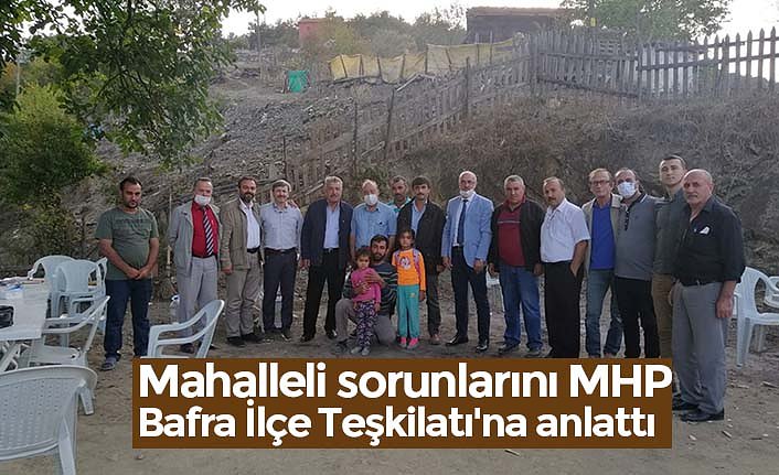 MHP Bafra İlçe Teşkilatı Başkan Barbaros Turna Yönetim Kurulu Üyeleri, Paşaşeyh, Kanlıgüney, Komşupınar ve Bengü mahallelerini giderek halkın sorunlarını dinledi. Vatandaşların tarımdan hayvancılığa, sağlıktan eğitime, altyapı ve ulaşım alanlarında sorun, düşünce ve görüşleri üzerine sohbetler gerçekleştirildi. Dile getirilen her sorun, yetkili mercilere iletilmek üzere not edildi.