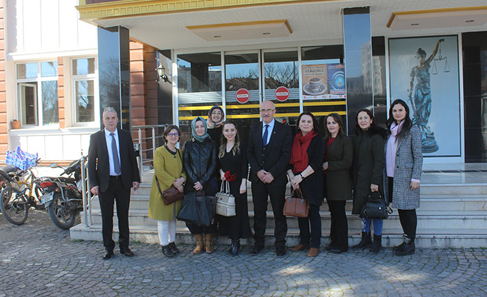 Bafra Milliyetçi Hareket Partisi İlçe Başkanı Barbaros Turna, İlçe Başkan Yardımcısı Fatih Uncu, Kadın Kolları İlçe Teşkilatı ve Kadın Meclis Üyesi Adayları Bafra Adliyesinde çalışan kadınları ziyaret ederek 8 Mart Dünya Kadınlar Gününü kutladı. Bafra Adliyesinin ardından İlçe Emniyet Müdürü Süleyman Gökay Gökdoğan`ı ziyaret eden teşkilat üyeleri Polis Merkezinde görevli memurlarında Kadınlar Gününü kutladı.