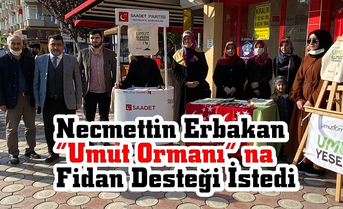 Bu sebeple kaybettiğimiz değerleri ve güzellikleri tekrar kazanma umudumuzu; Ülke genelinde başlattığımız “fidan bağışı kampanyasıyla” kuracağımız, “Necmettin Erbakan – Umut Ormanın ”da yeniden yeşertebileceğimizi ifade ediyoruz.