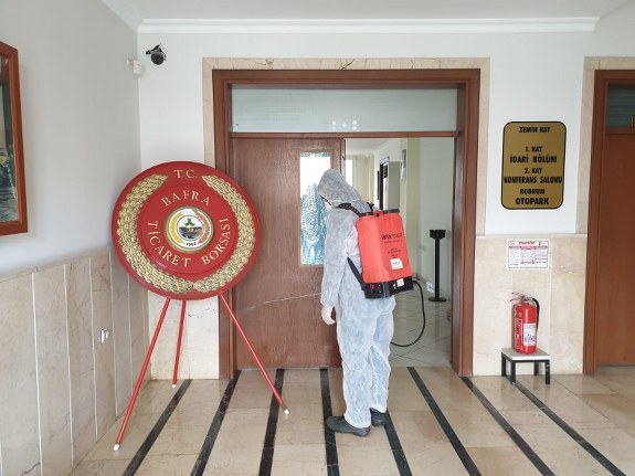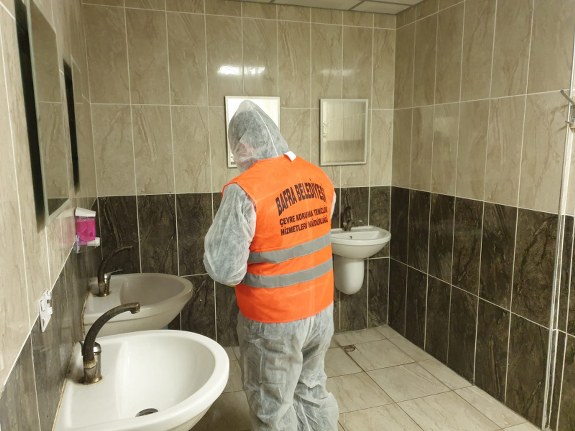 Toplum sağlığına büyük önem veren Bafra Belediyesi, Temizlik İşleri Müdürlüğüne bağlı ekipler tarafından ilçedeki başta kamu binaları ve bağlı birimleri olmak üzere tüm toplu yaşam alanlarında dezenfekte işlemlerini belirlenen periyodla sürdürüyor.