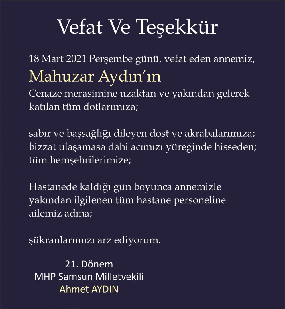 19 Mart 2021 Perşembe günü, vefat eden annemiz,