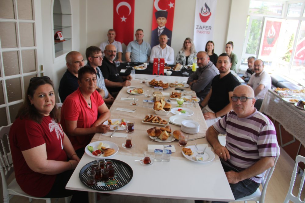 Zafer Partisi ilçe Başkanı Hakan Keser ve Yönetim Kurulu Üyeleriyle birlikte sabah kahvaltısında tanışma maksadıyla İlçe Binasında ilçe de görev yapan Basın mensuplarıyla kahvaltıda bir araya geldiler