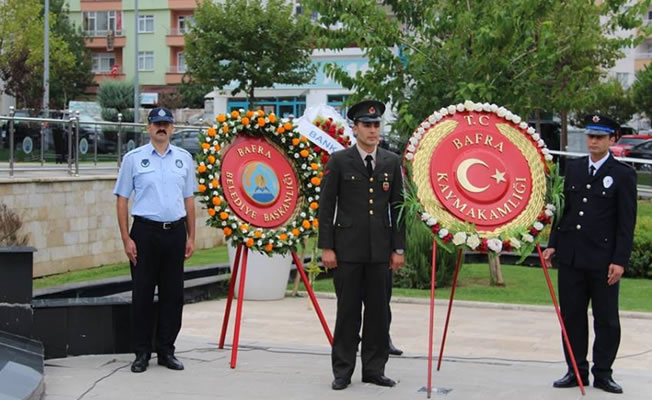 Bafra 15 Temmuz Şehitler Kent Meydanında gerçekleştirilen törende ilk olarak Atatürk Anıtına çelenk sunma merasimi yapıldı. Bafra İlçe Kaymakamı Ali Fuat Türkel, Bafra Belediye Başkanı Zihni Şahin ve Bafra Garnizon Komutanı Binbaşı İlhan Güngör`ün katılımıyla gerçekleşen çelenk sunma töreninin ardından program şehitler için bir dakika saygı duruşundan sonra İstiklal Marşı okundu.
