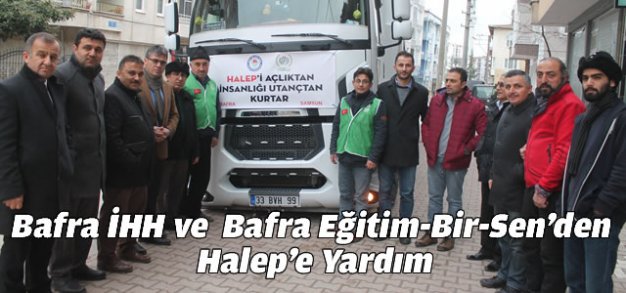 Bafra Eğitim Bir Sen Başkanı Hamdi Yıldız “Halep'te yaşanılan zulmün akan kan ve gözyaşının yetim kalan yavruların evlatlarını bombalar ile yıkılan binaların altında bırakan babaların anaların acılarına bir nebze ortak olabilmek kardeşlerimizin yarasına bir nebze olsun merhem olabilmek için Ülkemizin her köşesinden olduğu gibi Baframızdan da yardım eli Halep'e uzandı. Eğitim Bir Sen Bafra Temsilciliği olarak üyelerimiz ve öğretmenlerimiz duyarlılık göstererek un kampanyasına katkı sağladılar 1. Tırımızı Bafimder ve Memur Sen olarak Halep'e Yol Açın sürecinde dualar ile yola çıkardık. Kampanyanın devamında 2. Tırımızı da Bafra IHH ile birlikte Eğitim Bir Sen olarak mazlum kardeşlerimize ulaştırmak üzere bugün dualar ile yola çıkardık. Bu yardımların yerine ulaşmasında önemli bir hizmeti yerine getiren IHH yardım kuruluşu İslam coğrafyası insanlık için çok büyük bir önem arz ermektedir. Fedakarca çalışmaları yapan IHH yardımların bereketlenmesini sağlamaktadır. Memur Sen ve IHH arasında soylu bir dayanışma sergilenmektedir. Memur Sen mazlumun sesi olmakta Her platforma taşıyarak uluslararası arenada kamuoyu oluşturmaktadır. Bizler her daim mazlumun ve mağdurun yanında olacağız. Cenabı Allah İslam coğrafyasında yaşanan bu zulümlerin sona ermesi için Müslüman Türk milletine güç ve kudret versin. Zalime fırsat vermesin inşallah’’ diyerek temennilerde bulundu.