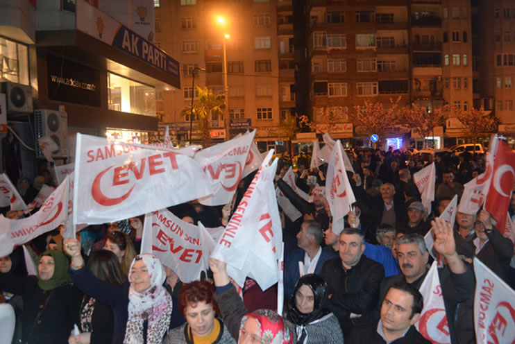 AK Parti Bafra ilçe Başkanı Tuncay Yurduseven de yaptığı selamlama konuşmasında; “Cumhurbaşkanlığı Hükümet Sistemi halkoylaması kesin olmayan sonuçlara göre; Bafra’mızda % 63 ve Ülke Genelinde % 51,35 oranıyla sonuçlanmıştır. Ülkemiz ve Milletimizin, İstiklaline ve İstikbaline vermiş olduğunuz destek için çok teşekkür ediyorum. Cumhurbaşkanlığı Hükümet Sistemi; Türkiye’mize hayırlı olsun” şeklinde konuştu