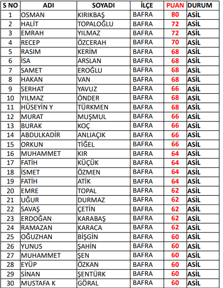 Bafra`da bekçilik sınavını kazananlar belli oldu.